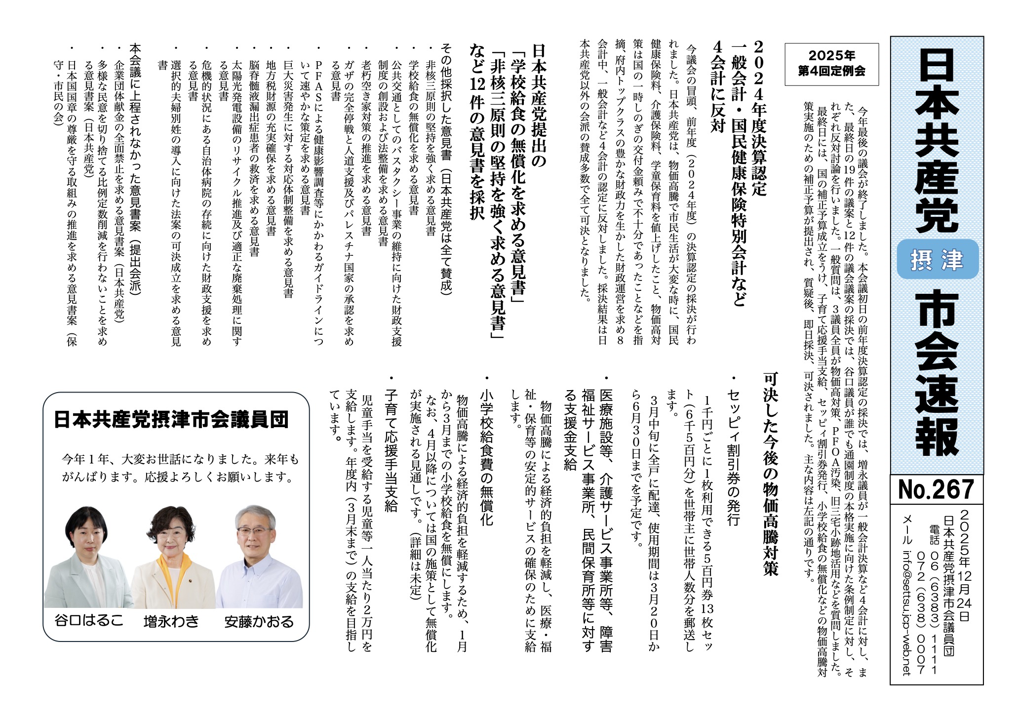 日本共産党提出の4意見書案のうち次の2意見書を採択しました